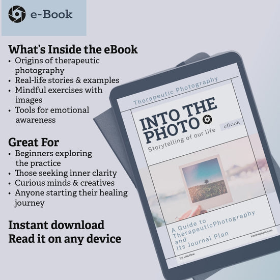 This bundle is your all-in-one toolkit to explore the mindful world of therapeutic photography. Start with the e-Book to understand the practice and its emotional power, then dive into the interactive Journal Plan to reflect through photos, prompts and personal insights.